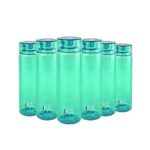 Cello H2O Round Unbreakable Plastic Water Bottle | Lid Is Sealed By A Silicone Ring | Leak Proof & Break-Proof |Best Usage For Office/School/College/Gym/Picnic/Home/Fridge | 1 Liter | Green, Set Of 6