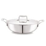 - Triply Stainless Steel Construction – Cello Tri-Ply Kadhai with Lid Boasts A Three-Layer Construction, Featuring A Thick Outer Layer Of Induction-Friendly Stainless Steel, Aluminum Layer For Even Heat Distribution, And An 18/10 Stainless Steel Thick Inner Layer For Flavor Retention And Nutrient Preservation.