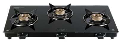 Havells Calore Gas stove |3 Heavy Duty Forged Brass Burner|6 mm Toughened Glass|Premium Valves|Removable Drip Tray|Soft Touch Knobs|5 year Warranty on Burners, Glass & Valves by Havells (Black)