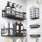 LUXEHOME 5 pcs Bathroom Organizer, Self adhesive Stainless Steel Wall Shelf(Number of Shelves – 5, Black)