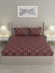 Raymond Home Microfiber Double Flat 110 TC Geometric 1 Bedsheet with 2 Pillow Covers(Brown)